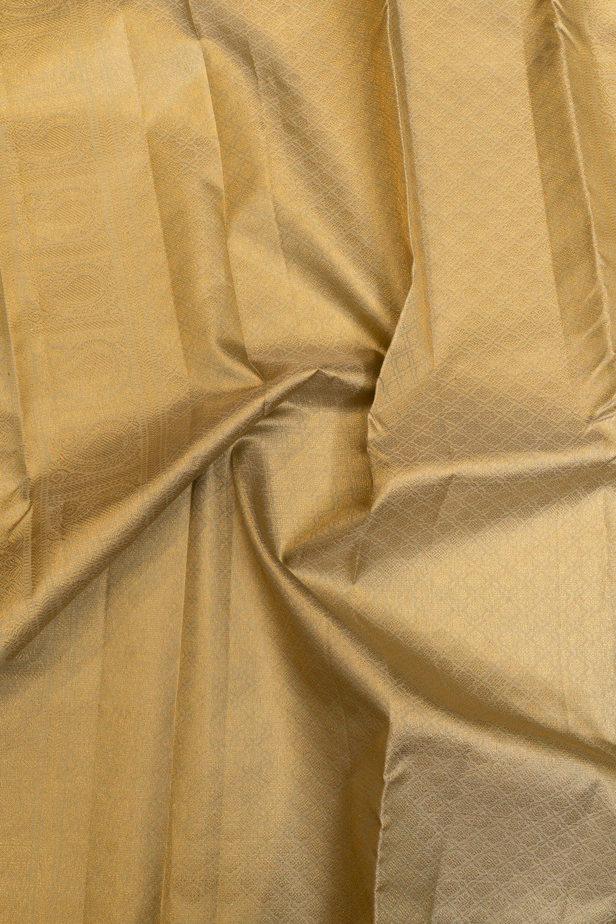 Embrace understated luxury with this exquisite tea green Vairaoosi pure Kanchipuram silk saree, a refined expression of South Indian textile heritage. The soft, muted tea green hue exudes calm sophistication, while the intricate Vairaoosi pattern adds delicate detailing that catches light with subtle brilliance. Crafted from authentic Kanchipuram silk, this saree offers the exceptional sheen, durability, and graceful drape that discerning connoisseurs cherish. The gentle color palette makes it remarkably versatile—equally suited for intimate gatherings, festive celebrations, and formal occasions. Handwoven by master artisans using time-honored techniques, each saree reflects meticulous attention to detail and unwavering commitment to quality. This distinguished piece transcends seasonal trends, becoming a timeless wardrobe staple that celebrates both heritage craftsmanship and contemporary elegance with effortless grace.