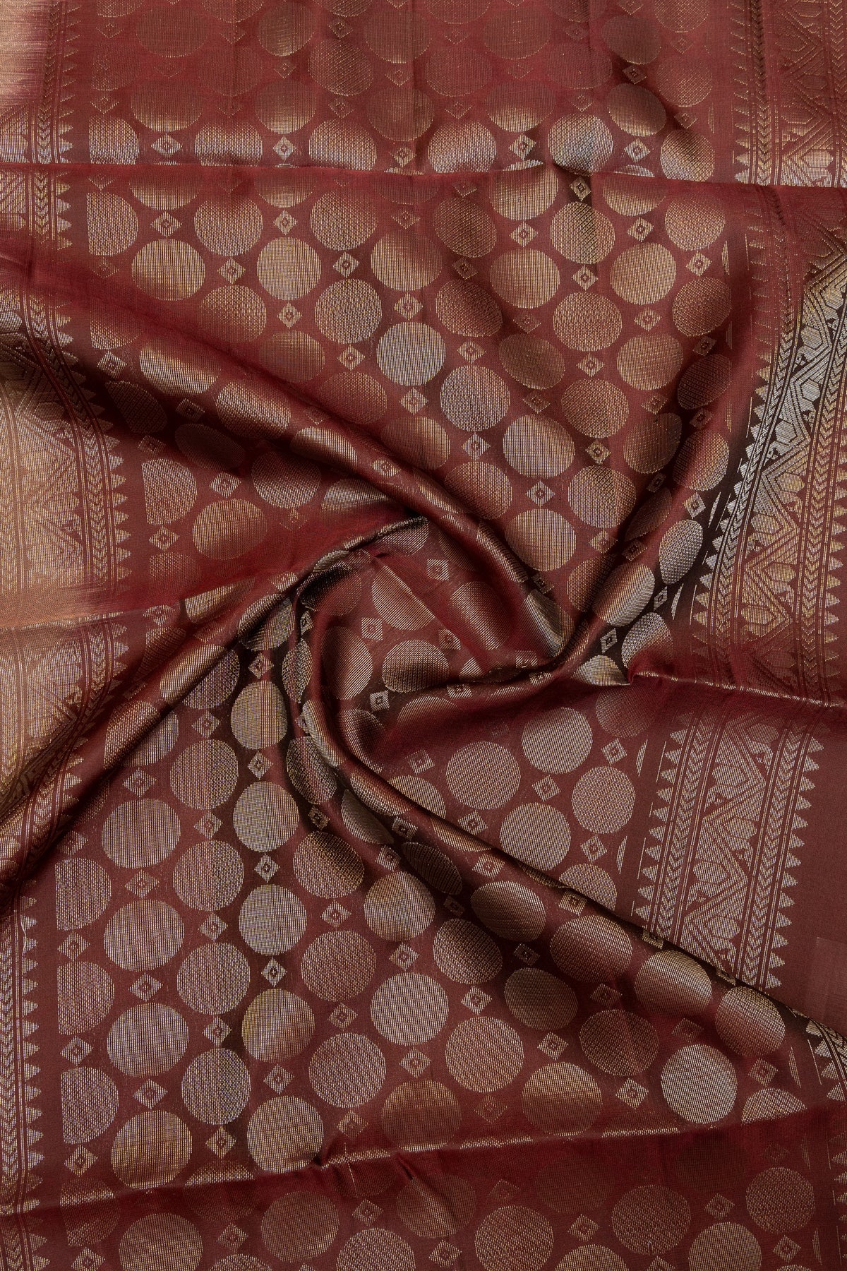 Drape yourself in timeless elegance with this exquisite pure silk saree, where soft biscuit beige meets rich maroon in a harmonious blend. Crafted from premium silk, this saree offers a luxurious feel against the skin while maintaining a graceful drape that flatters every silhouette. The sophisticated color palette transitions seamlessly, making it versatile for both festive occasions and refined everyday wear. Perfect for those who appreciate the finer details of traditional craftsmanship combined with contemporary style.