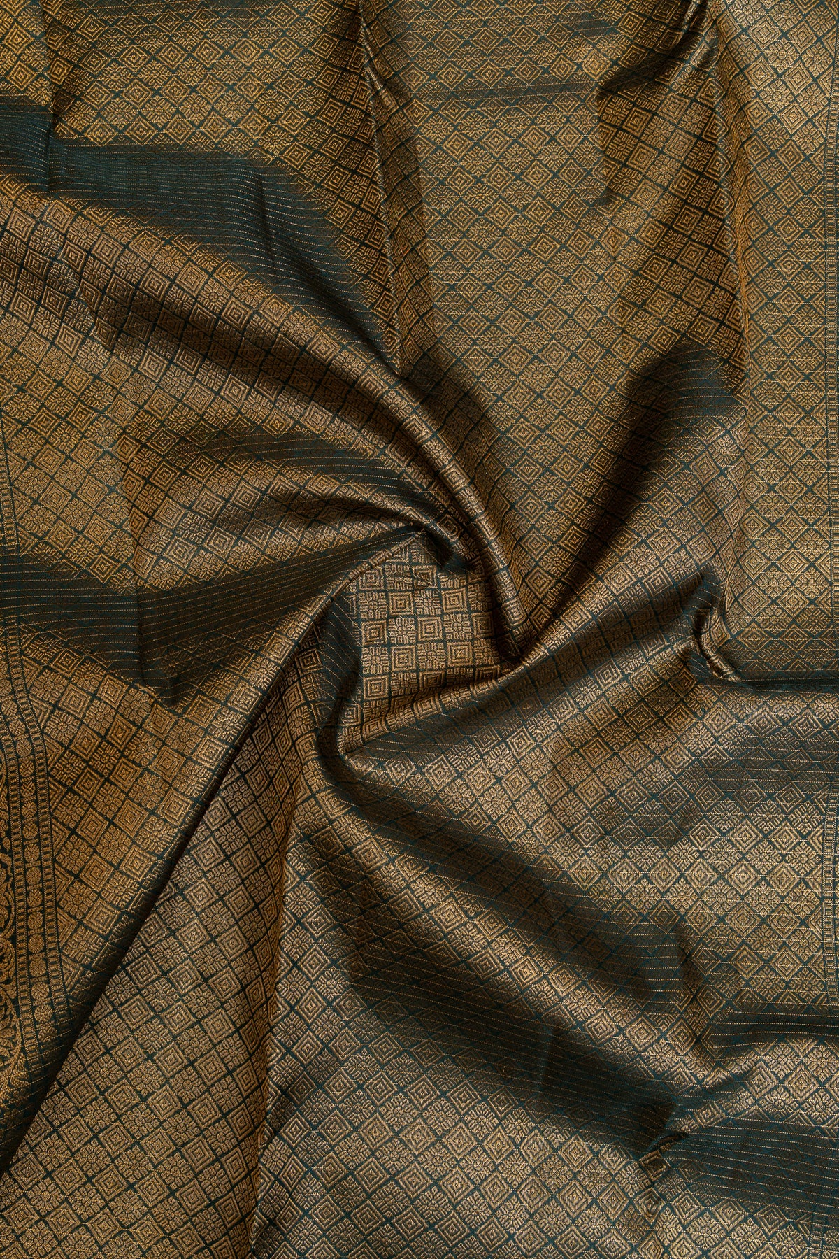 Indulge in understated luxury with this pure Kanchipuram silk saree in rich bottle green. Meticulously woven by accomplished artisans using traditional South Indian methods, this saree embodies the essence of refined craftsmanship. The lustrous silk fabric drapes with effortless grace, while the deep bottle green hue exudes timeless sophistication and versatility. Perfect for weddings, festive occasions, and formal gatherings, this saree seamlessly transitions from day to evening wear. The authentic Kanchipuram weave ensures exceptional quality and longevity, making it a distinguished addition to your collection. This timeless piece celebrates heritage artistry while offering contemporary elegance.