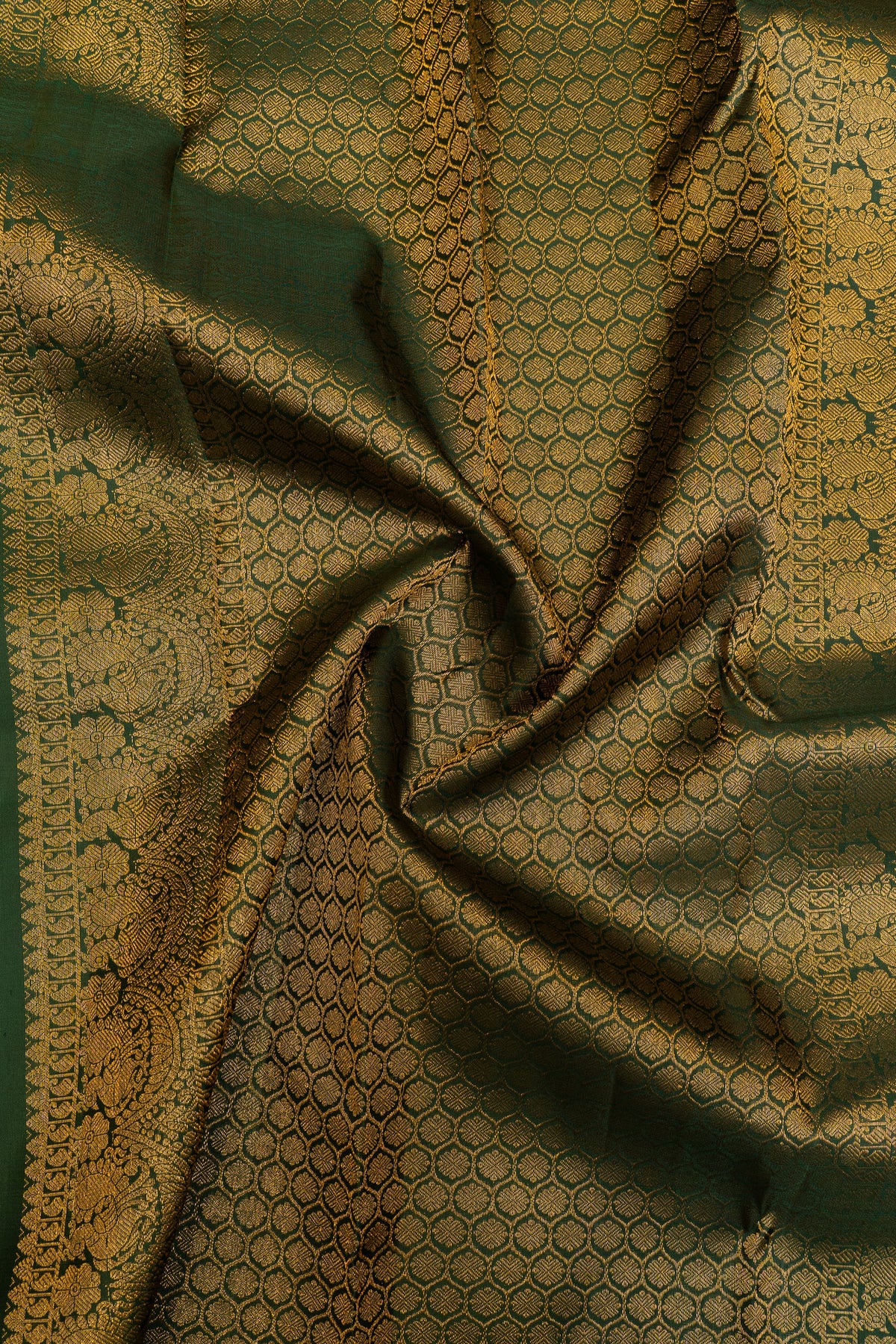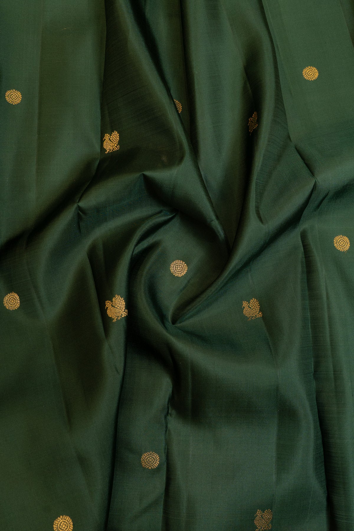 Embrace timeless elegance with this distinguished Kanchipuram silk saree in deep bottle green, a classic hue that epitomizes refined taste. Woven from pure silk using ancestral techniques, this saree captures the essence of traditional South Indian craftsmanship with its characteristic lustre and substantial drape. The understated bottle green palette offers remarkable versatility, complementing various complexions and styling preferences across celebrations and formal occasions. Authentic Kanchipuram silk ensures exceptional durability and a graceful silhouette that endures throughout the day. The saree's traditional construction reflects generations of weaving expertise, making it a reliable choice for those who value heritage and quality. A versatile wardrobe staple that transcends trends, celebrating time-honored textile traditions while delivering sophisticated presence and lasting value.
