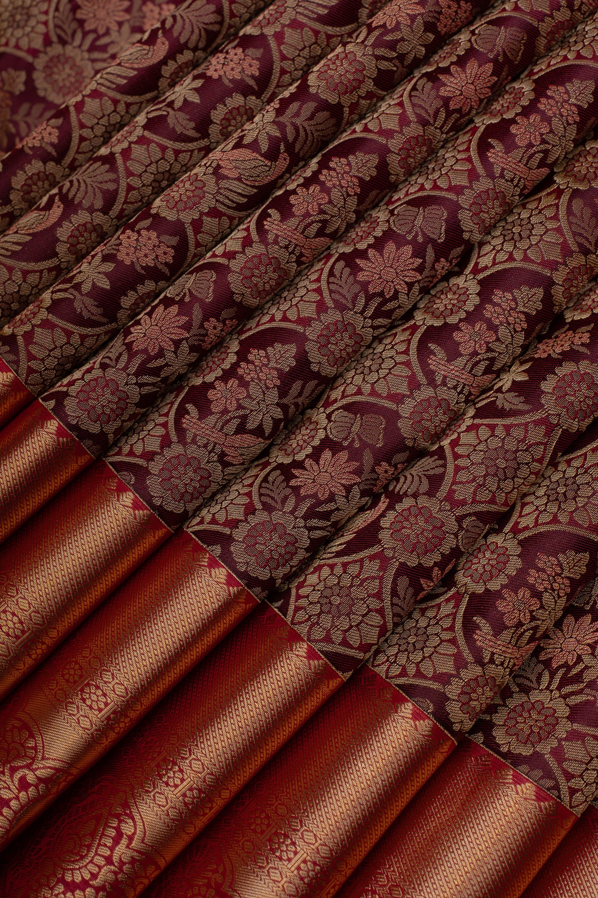 Burgundy floral brocade pure Kanchipuram silk saree