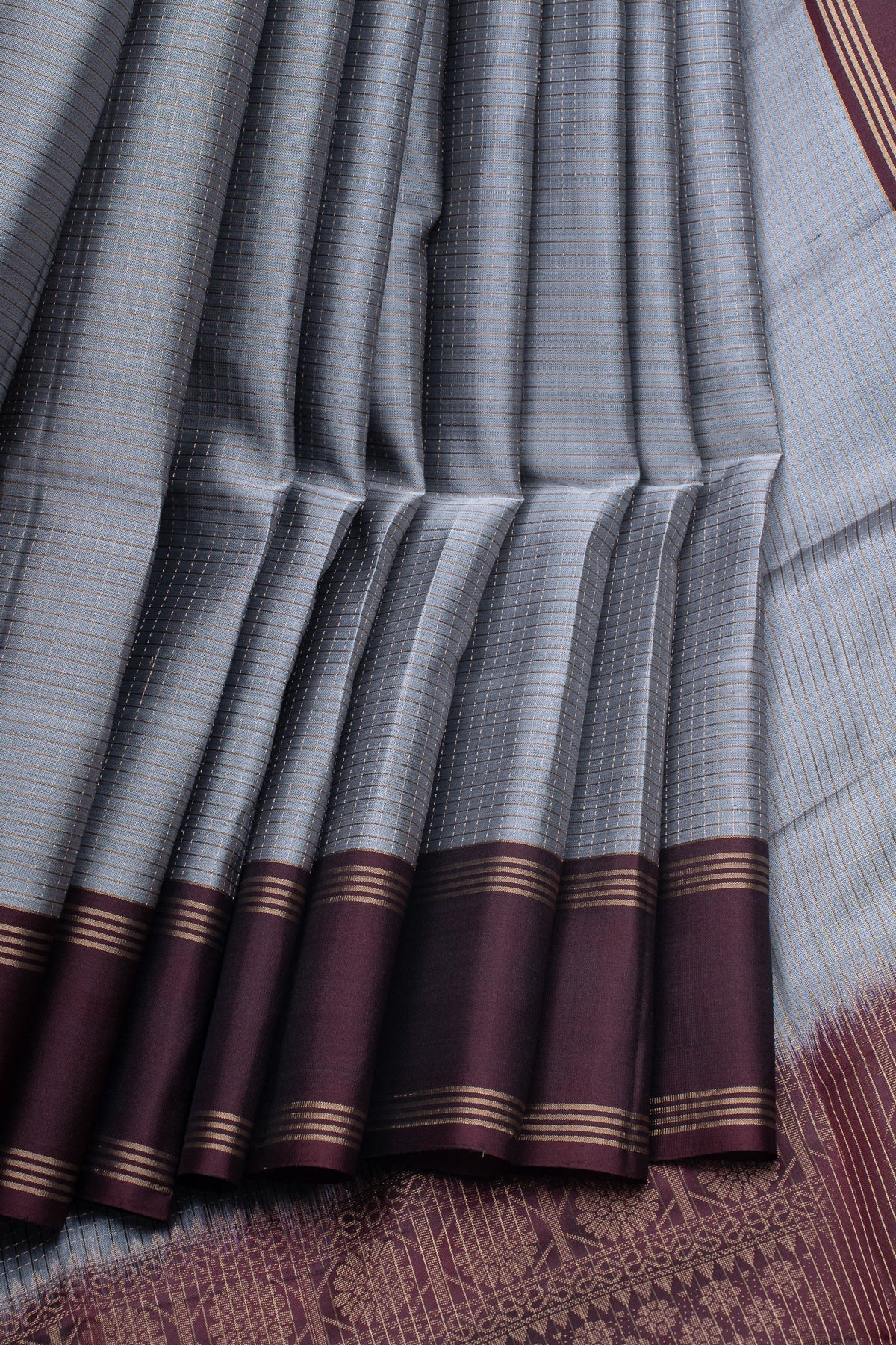 Discover refined elegance with our Grey and purple Zari checks pure soft silk saree, a masterwork of precision weaving and luxurious materials. The geometric check pattern, enhanced with delicate zari accents, creates a sophisticated interplay of texture and shimmer across the fabric. Rendered in a distinguished grey and purple palette, this saree exudes understated opulence—perfect for those who appreciate nuanced beauty over bold statements. Crafted from pure soft silk, the fabric drapes with natural grace while the zari detailing catches light subtly, adding dimension without overwhelming the design. Ideal for formal occasions, professional events, or intimate celebrations, this saree seamlessly bridges tradition and contemporary style. A versatile investment piece that speaks to your refined taste and appreciation for authentic Indian textile craftsmanship.