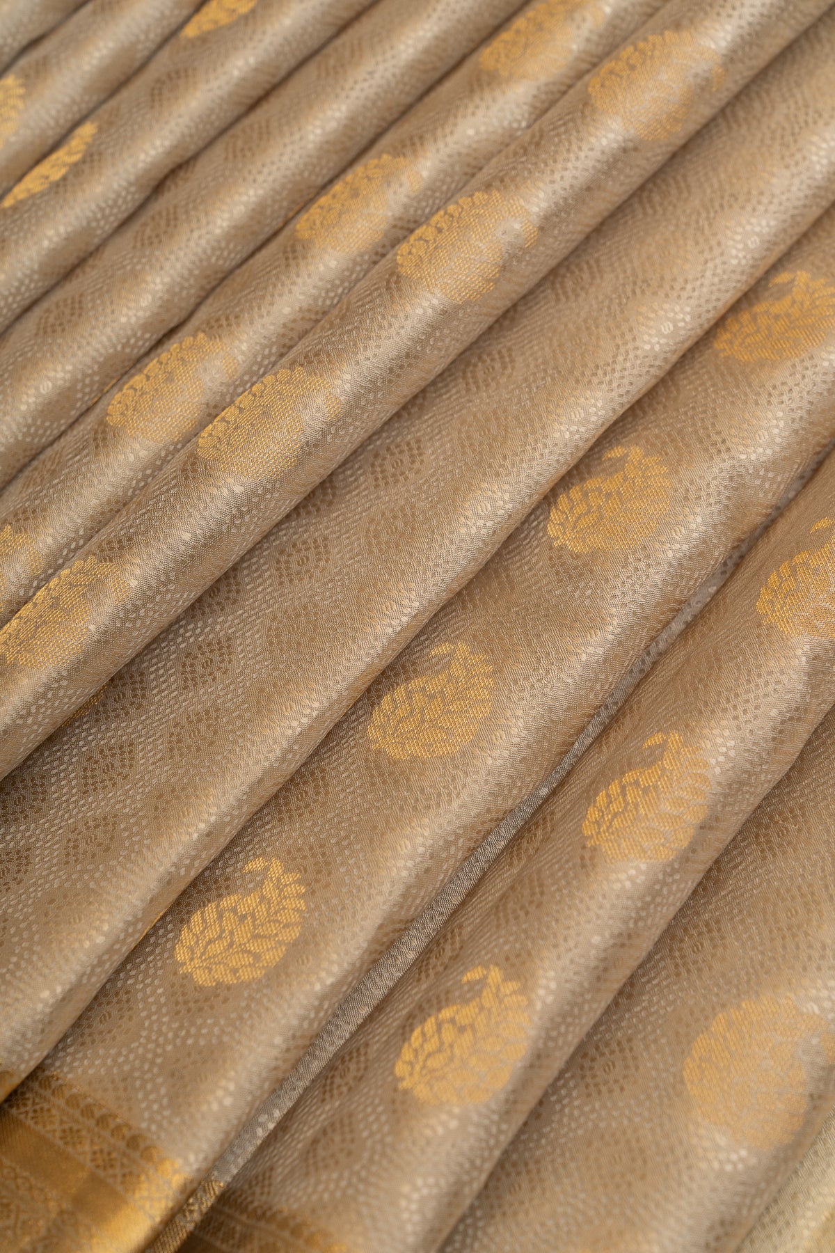 Greyish gold embossed pure Kanchipuram silk saree