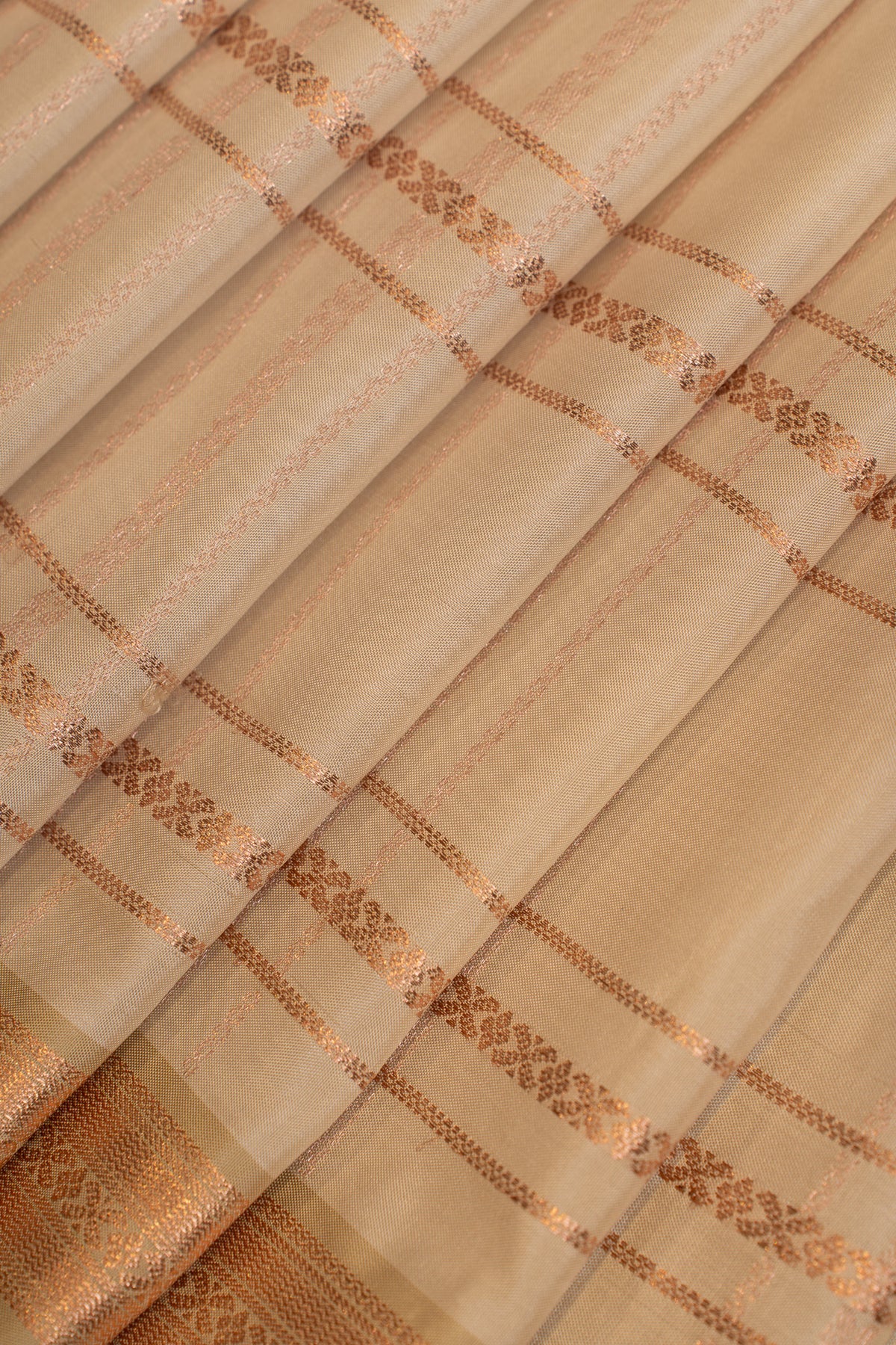This ivory pure soft silk saree features delicate zari checks that add a subtle shimmer to its refined texture. Crafted for an elegant drape, it is an ideal choice for formal occasions, embodying understated sophistication and timeless grace.
