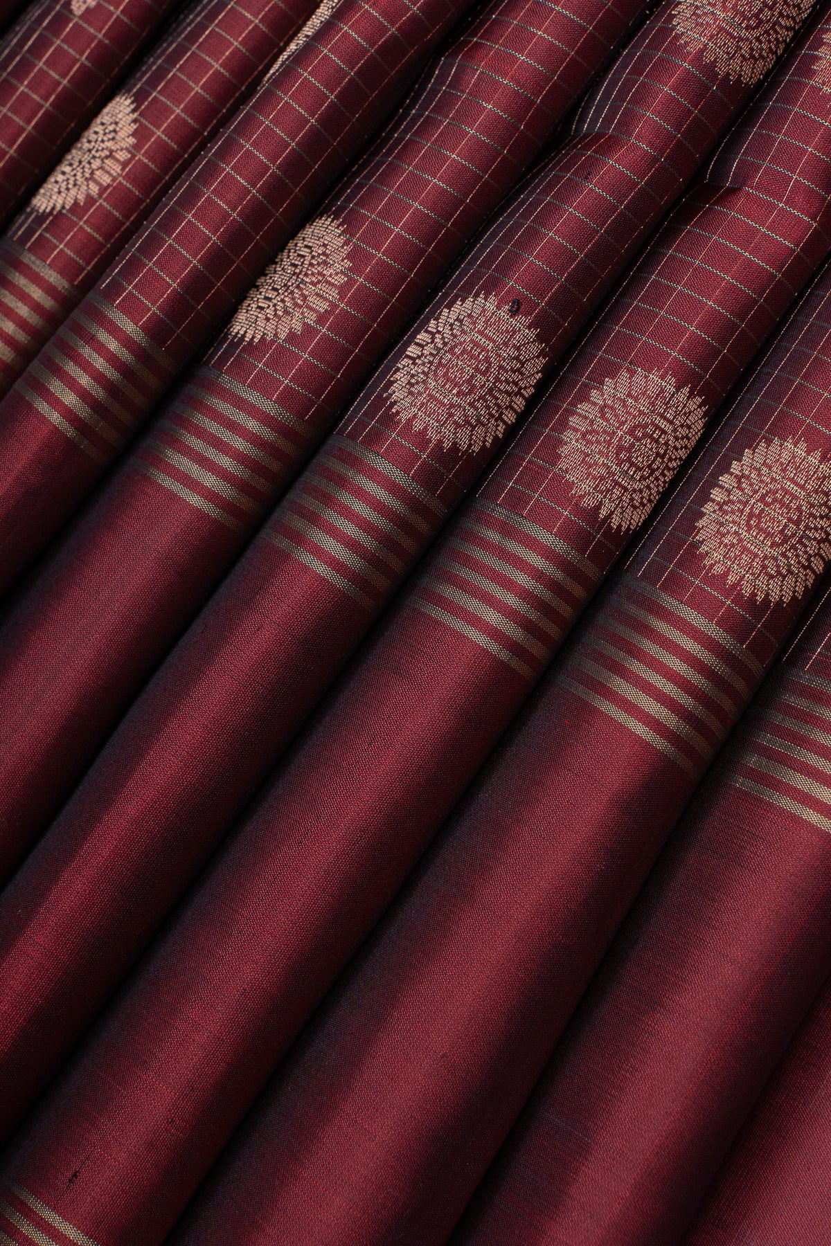 Maroon zari checks pure soft silk saree
