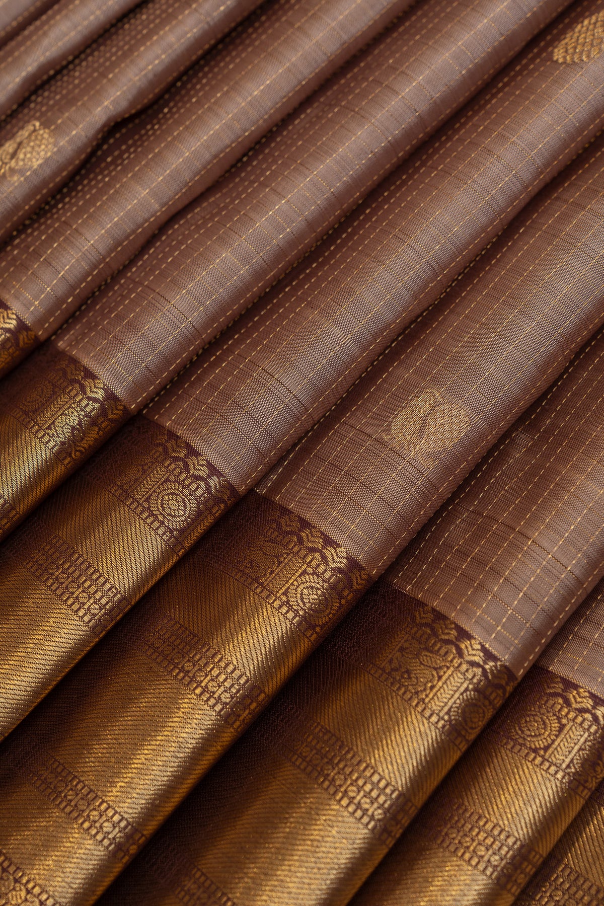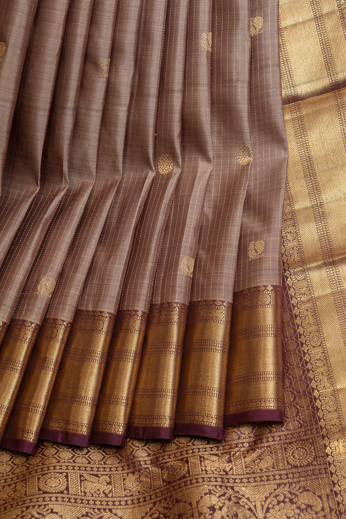 Mauve Zari checks pure Kanchipuram silk saree