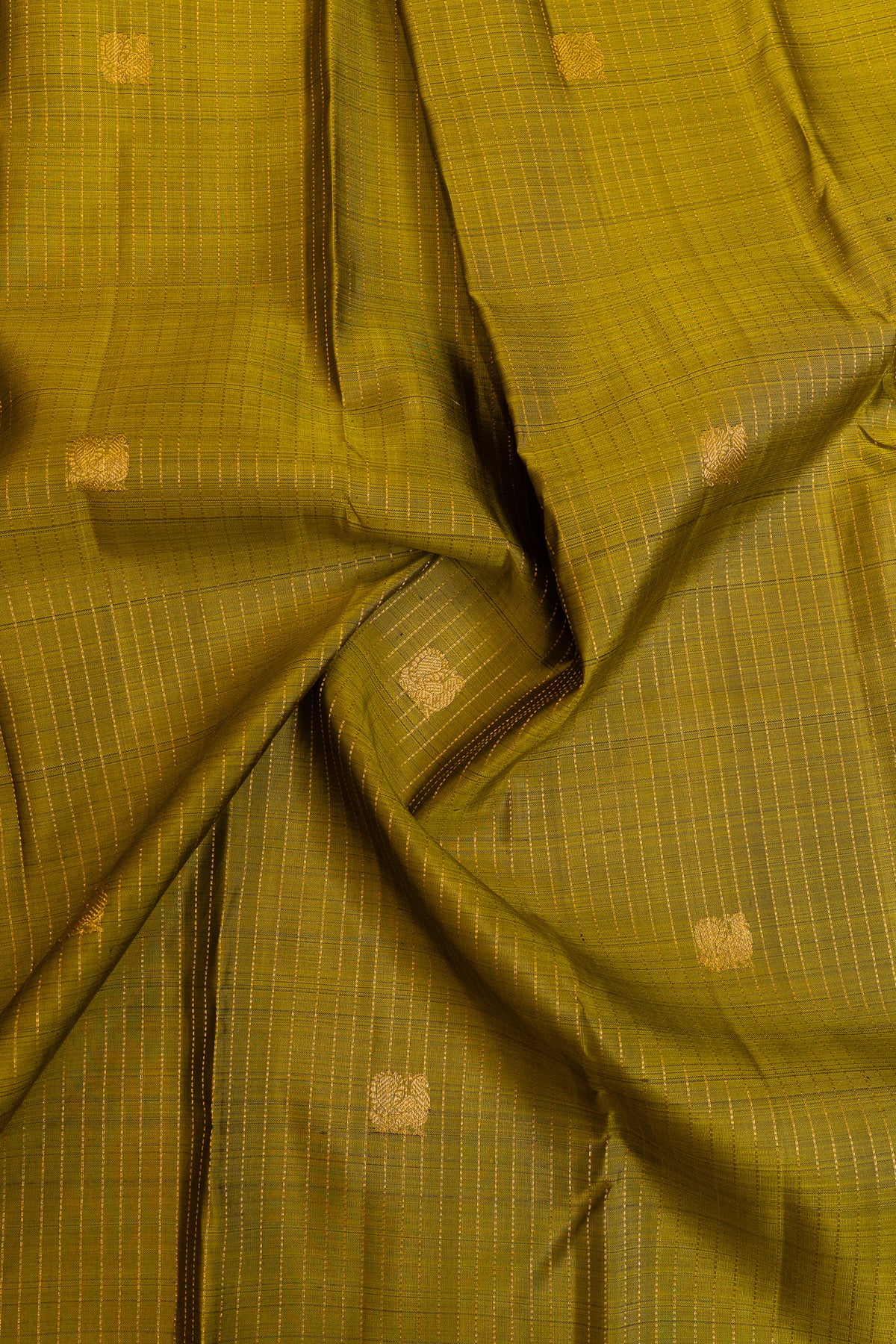 Celebrate timeless beauty with this captivating mehndi green and jamun Zari stripes pure Kanchipuram silk saree, a masterwork of traditional South Indian craftsmanship. The verdant mehndi green canvas is adorned with elegant Zari (gold thread) striped patterns in deep jamun purple, creating a striking visual rhythm that catches light with every movement. Handwoven from premium Kanchipuram silk, this saree offers the signature lustrous finish and graceful drape that discerning wearers treasure. The harmonious color combination evokes natural sophistication, making it perfect for weddings, festivals, and formal occasions. The meticulous striping technique showcases the skill of master artisans, ensuring each saree is a unique testament to heritage weaving. A truly distinguished piece that transforms any occasion into a celebration of elegance and cultural refinement.