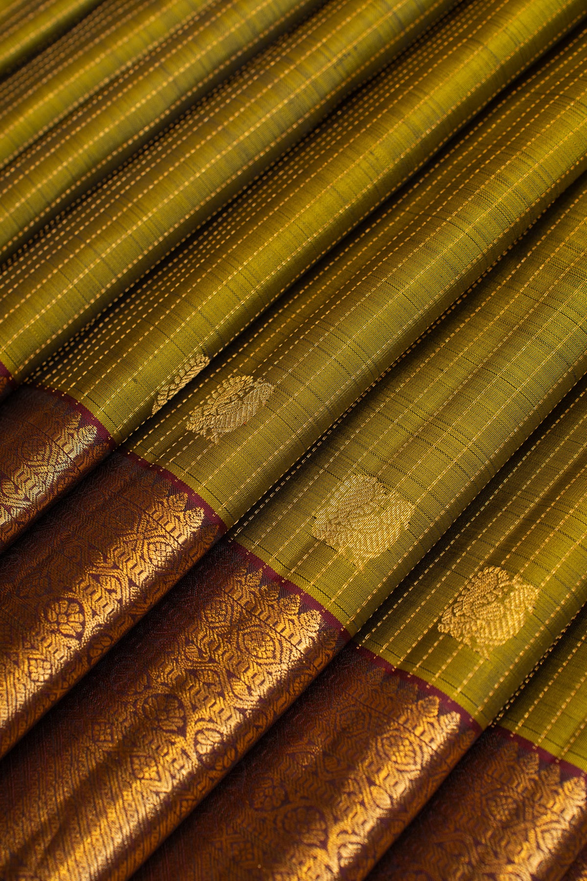 Mehndi green and jamun Zari stripes pure Kanchipuram silk saree