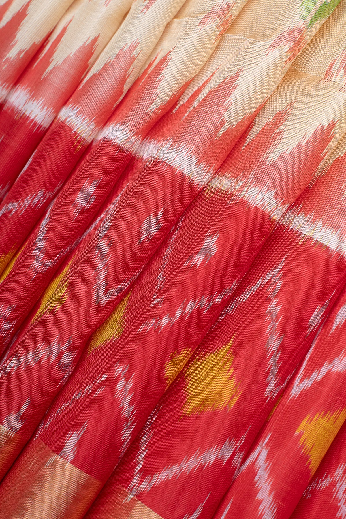Elevate your collection with this off-white and red silk saree, a striking composition that honors traditional aesthetics with contemporary sensibility. Woven from pure, soft silk, the fabric provides an exquisite drape and gentle comfort against the skin. The classic pairing of off-white and red creates a versatile canvas suitable for weddings, festivals, and formal occasions. The neutral off-white base allows the rich red accents to command attention, while maintaining an air of refined elegance. Perfect for those who appreciate timeless color combinations and seek a saree that seamlessly transitions between various celebrations and gatherings.