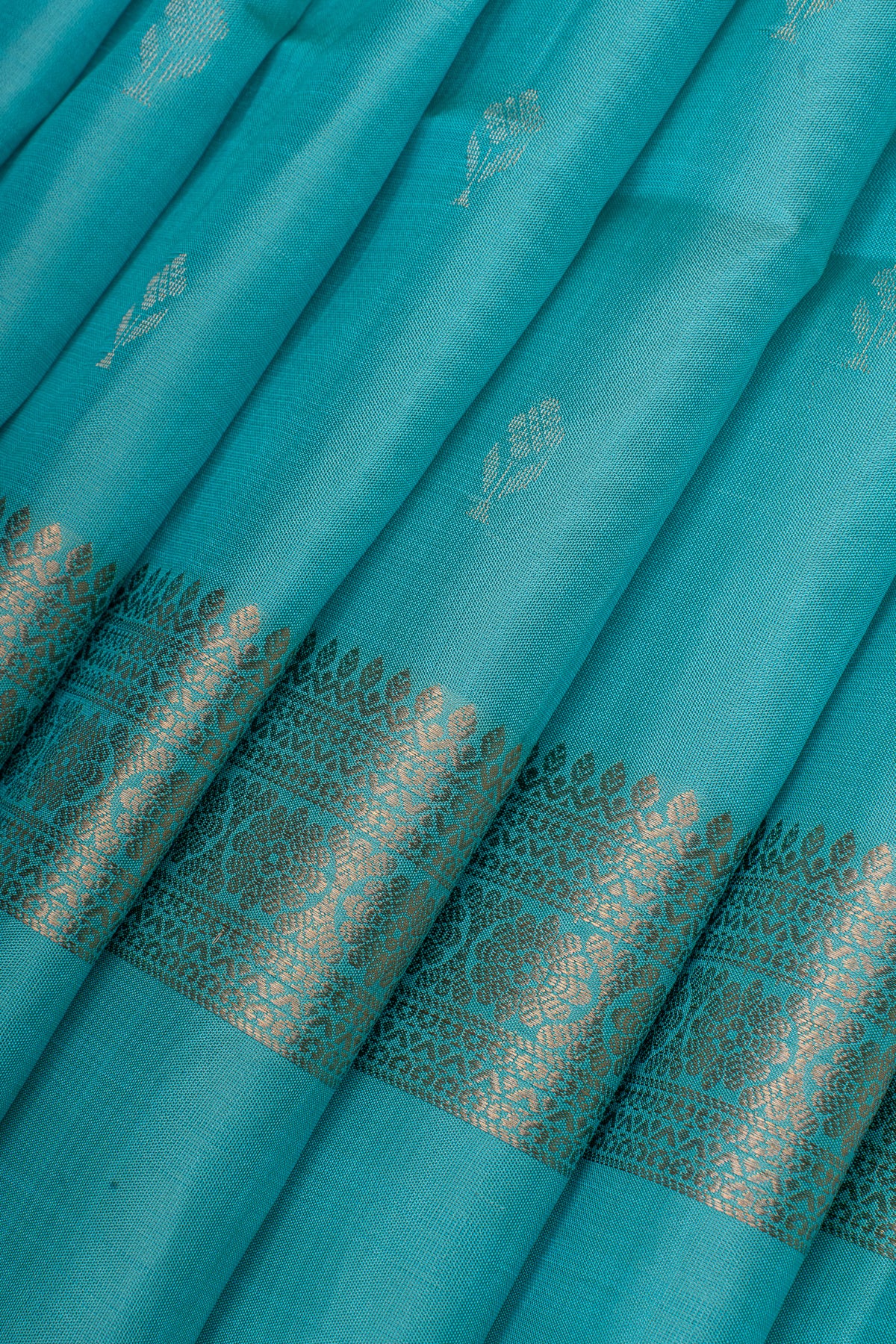 Embrace serene elegance with this pastel blue silk saree, featuring the traditional rettai pettu design that celebrates heritage craftsmanship. Woven from pure, soft silk, this piece combines delicate color with intricate detailing, offering a refined aesthetic for the discerning wearer. The gentle hue and structured pleats create a graceful silhouette, while the premium fabric ensures comfort and lasting quality. Perfect for celebrations, formal gatherings, or moments when you desire understated sophistication with cultural resonance.