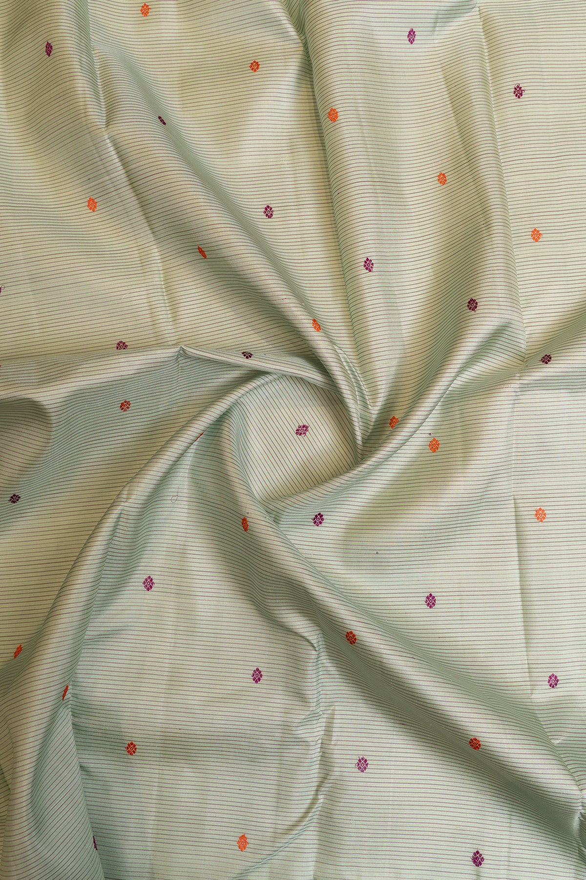 Embrace serene sophistication with this Pastel Blue Thread Stripes pure Kanchipuram silk saree, a refined interpretation of traditional South Indian textiles. Delicate pastel blue stripes run through the fabric, creating a subtle yet striking visual rhythm that appeals to the modern sensibility. Constructed from authentic Kanchipuram silk, this saree delivers exceptional drape, natural luminosity, and enduring quality. The understated color palette and linear design offer versatility for various occasions while maintaining cultural authenticity. Perfect for those who appreciate minimalist elegance, this piece transitions effortlessly from daytime gatherings to evening celebrations, embodying timeless grace.