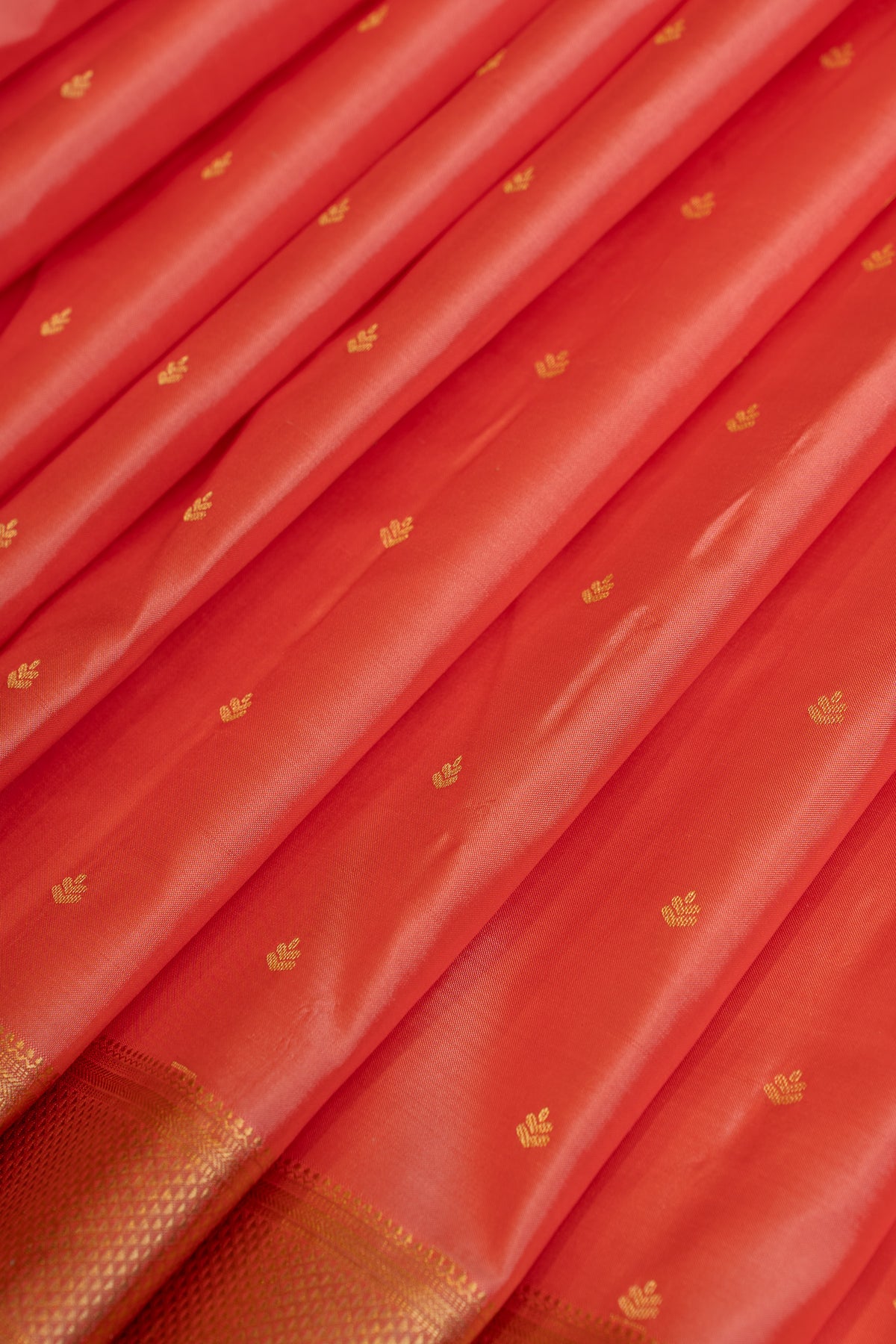 Peach and gold small border pure kanchipuram silk saree