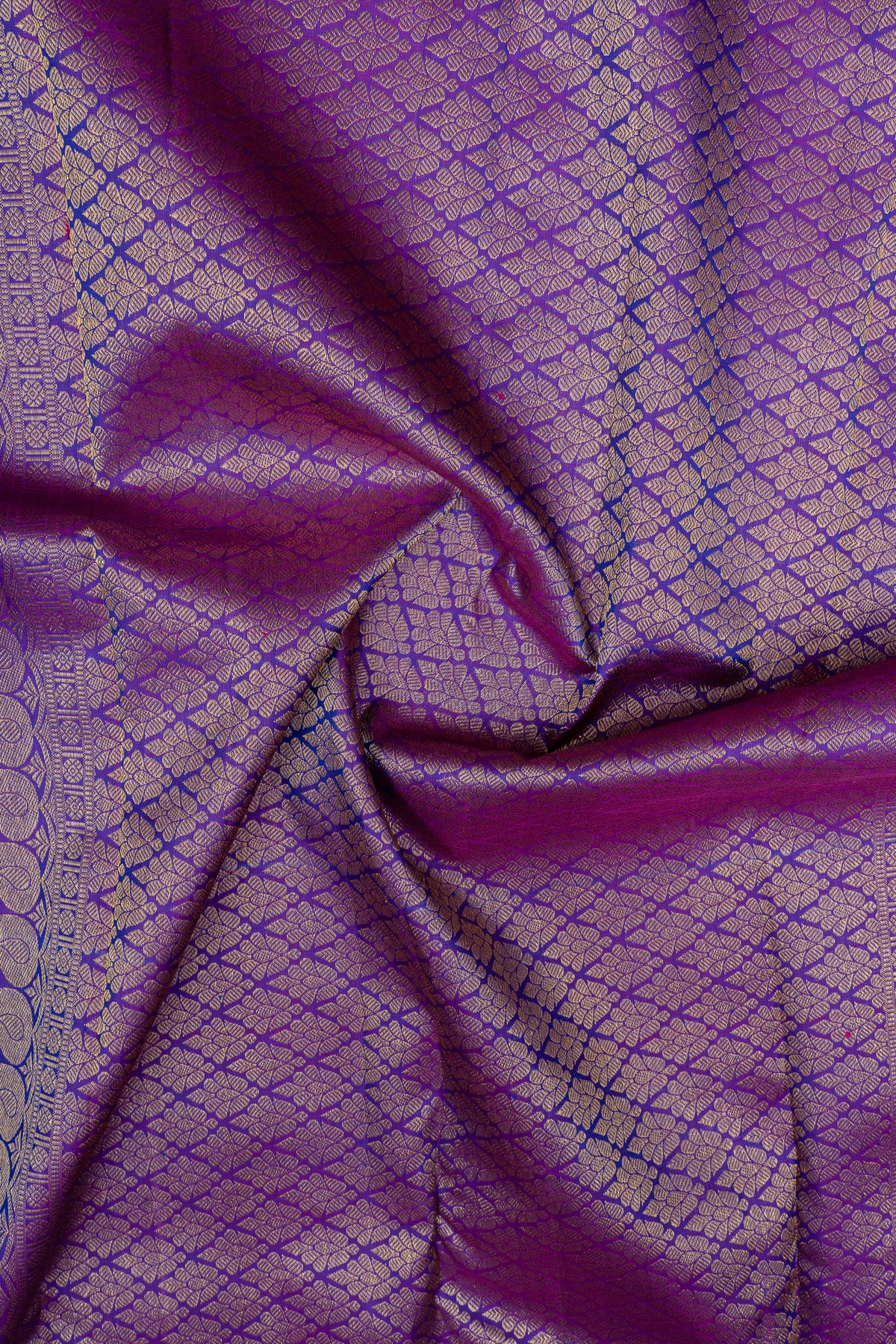 Exude regal elegance with this peacock blue and purple pure Kanchipuram silk saree. The vibrant peacock blue base is beautifully complemented by rich purple accents, creating a striking and sophisticated contrast.Woven from luxurious pure Kanchipuram silk, this saree features a smooth texture, lustrous finish, and graceful drape. Perfect for weddings, festive occasions, and grand celebrations, it reflects the exquisite craftsmanship of skilled South Indian weavers.