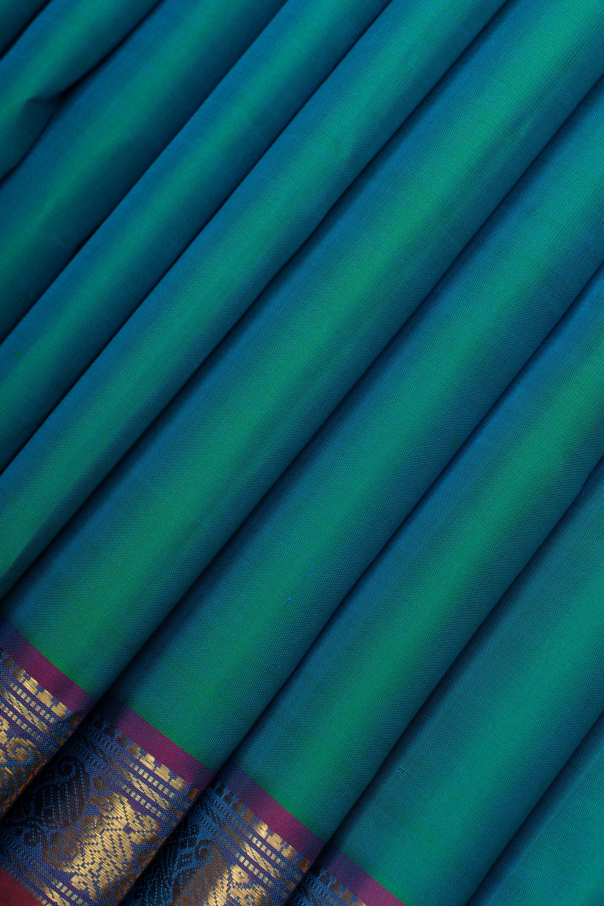 Peacock blue small border pure kanchipuram silk saree