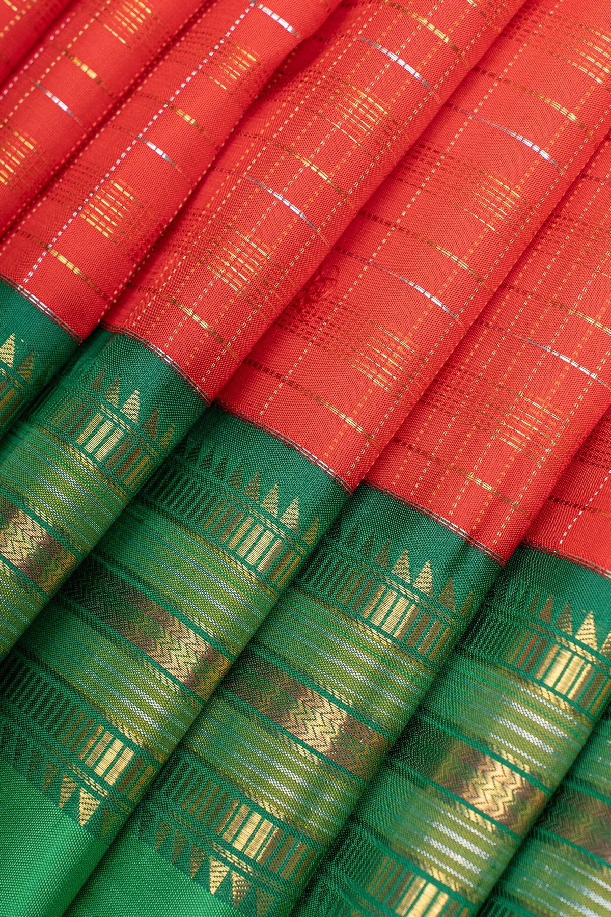 Red and green zari checks pure kanchipuram silk saree