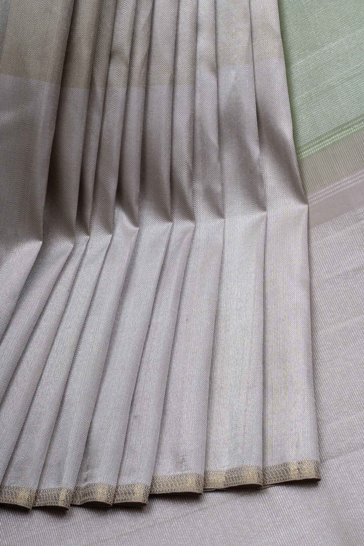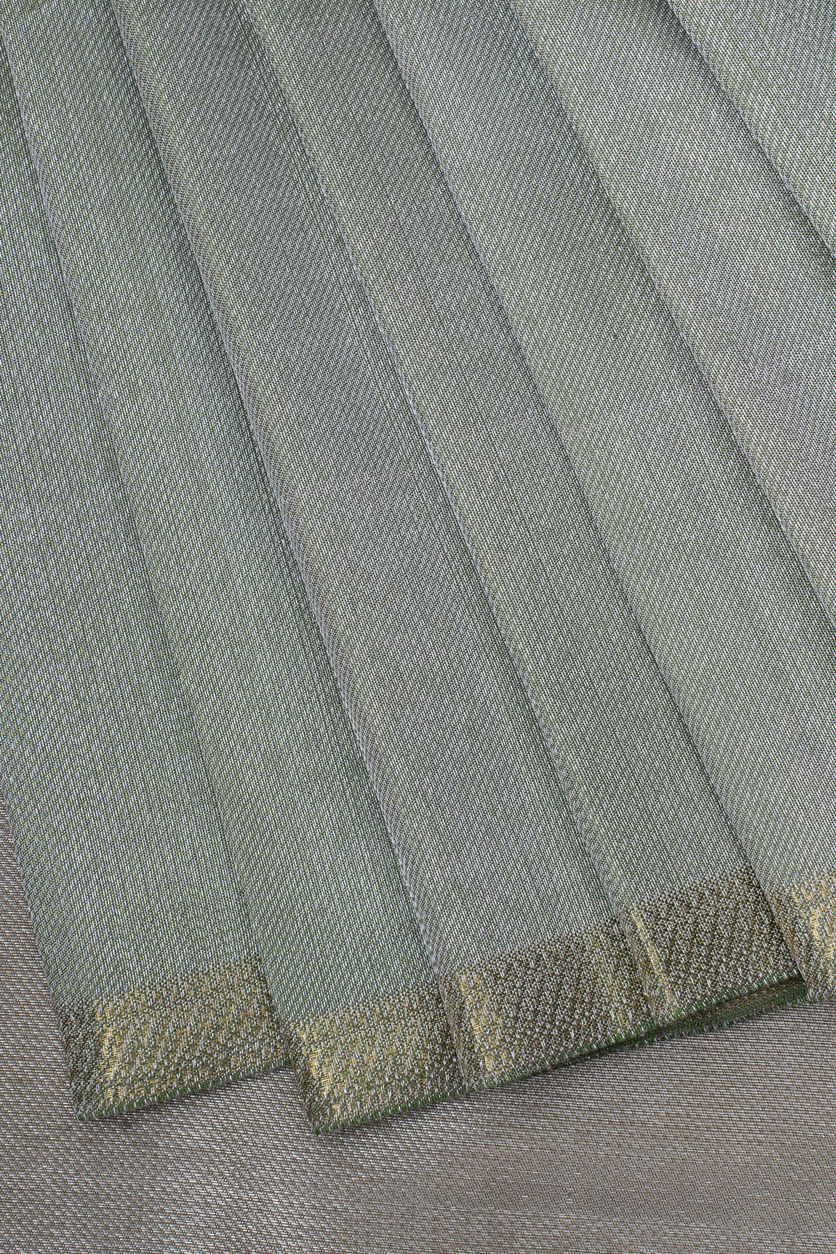 Elevate your ethnic wardrobe with this exquisite Kanchipuram silk saree, a masterpiece of traditional South Indian weaving. Featuring a sophisticated palette of silver, gold, and soft pastel green, this saree showcases the timeless Mupagam pattern with an impressive 8 Kol (border) design. Crafted from pure Kanchipuram silk, it offers a luxurious drape and lustrous finish that catches light beautifully. Perfect for weddings, festivals, and special occasions, this saree combines heritage craftsmanship with refined elegance, making it an investment piece for the discerning collector of fine textiles.