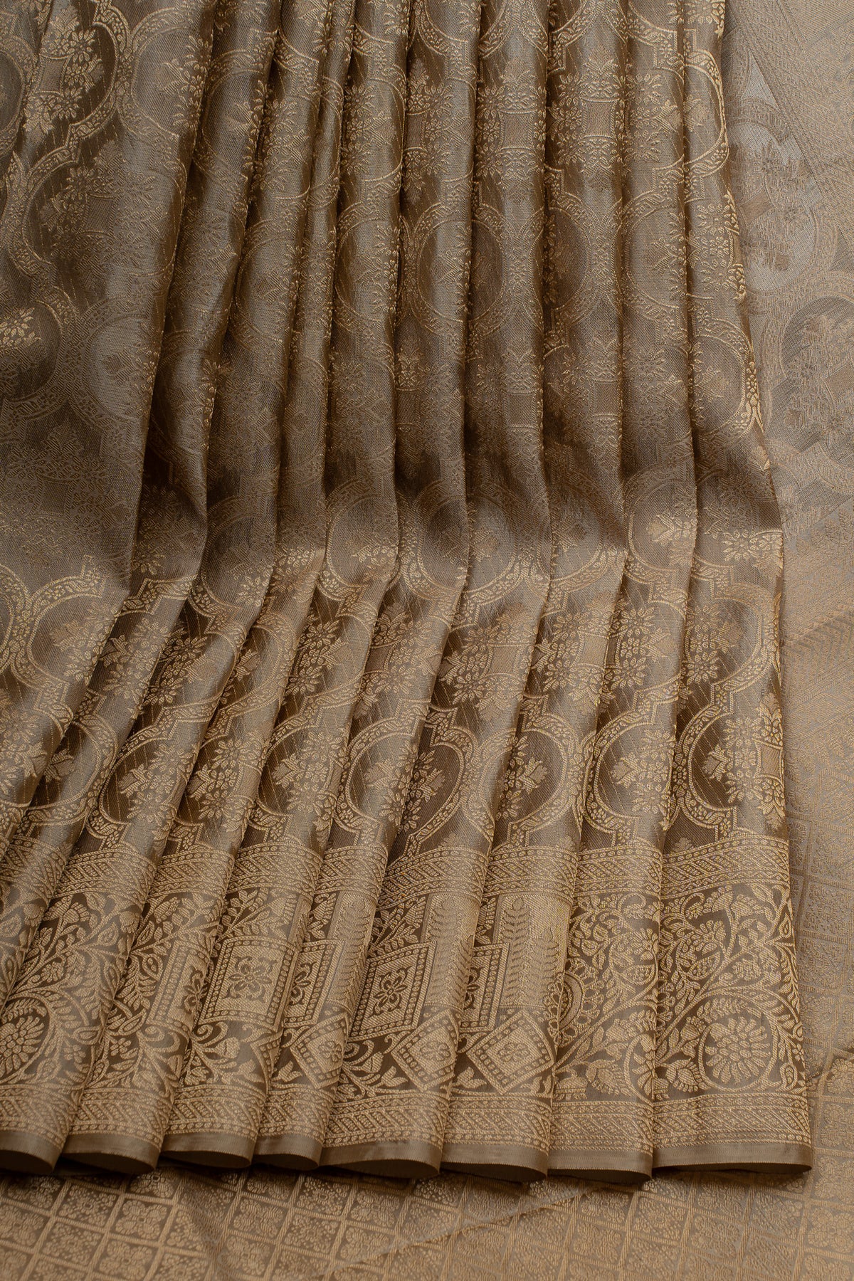 Silverish grey brocade pure Kanchipuram silk saree