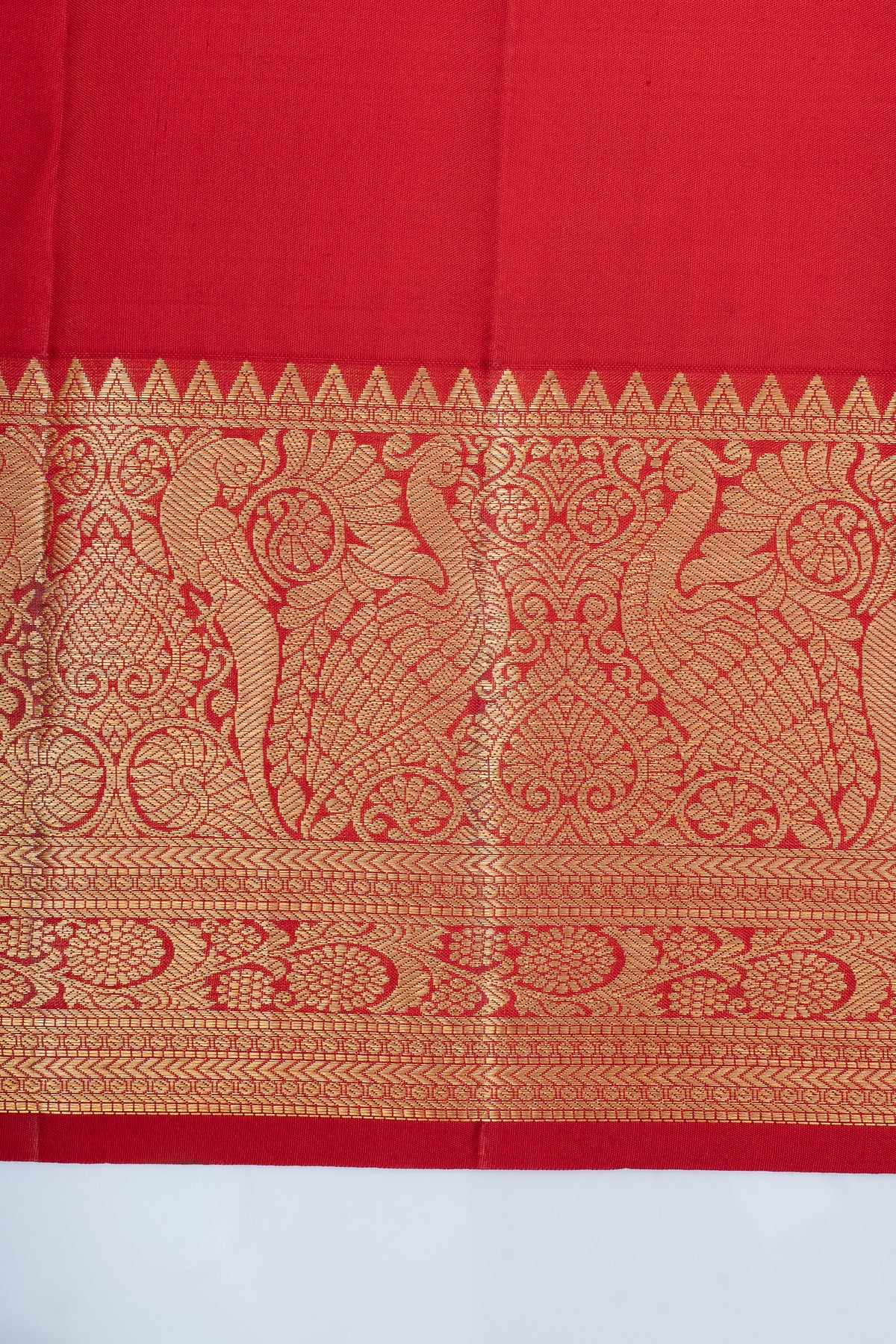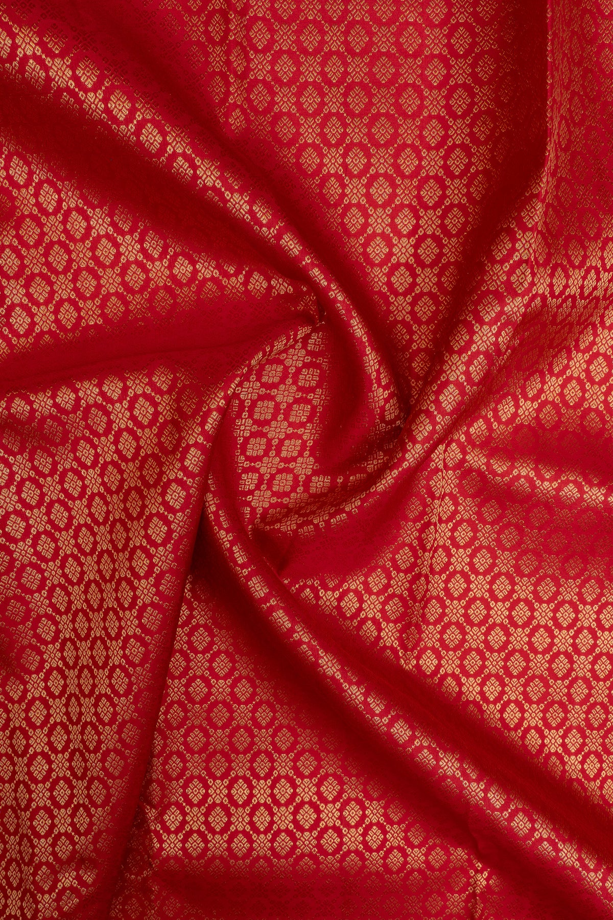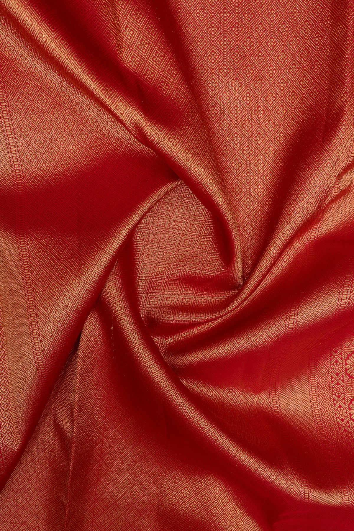 Honoring centuries of weaving heritage, this traditional red brocade saree is crafted from pure Kanchipuram silk with meticulous attention to detail. The vibrant red foundation provides a striking canvas for the ornamental brocade work, which gleams with precious metallic threads woven throughout. Each drape reveals the depth of traditional craftsmanship, making this saree a celebration of South Indian textile artistry. Ideal for weddings, religious ceremonies, and milestone celebrations, it represents an investment in timeless elegance and cultural continuity.